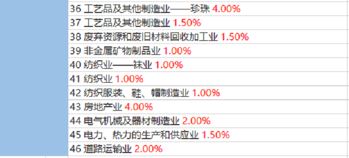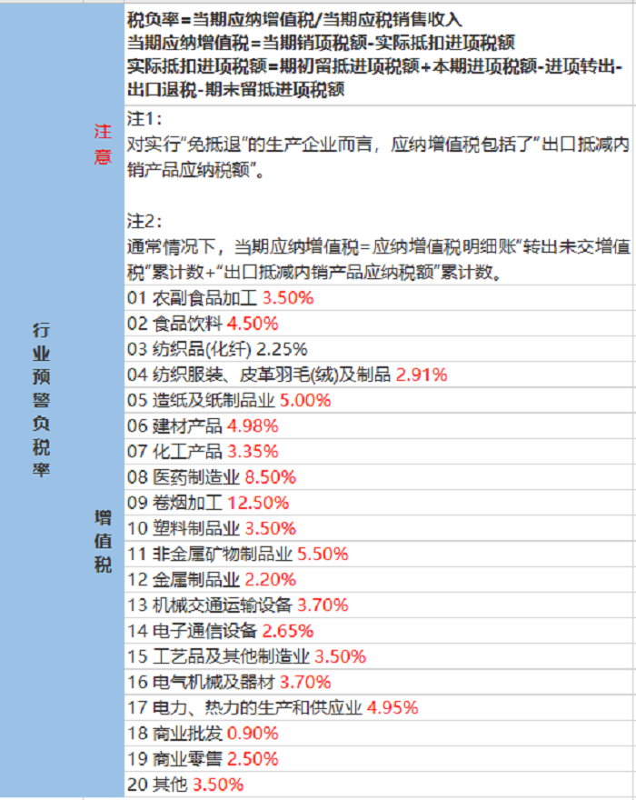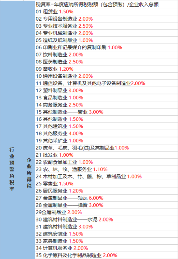 各行业的“预警税负率”(仅供参考)